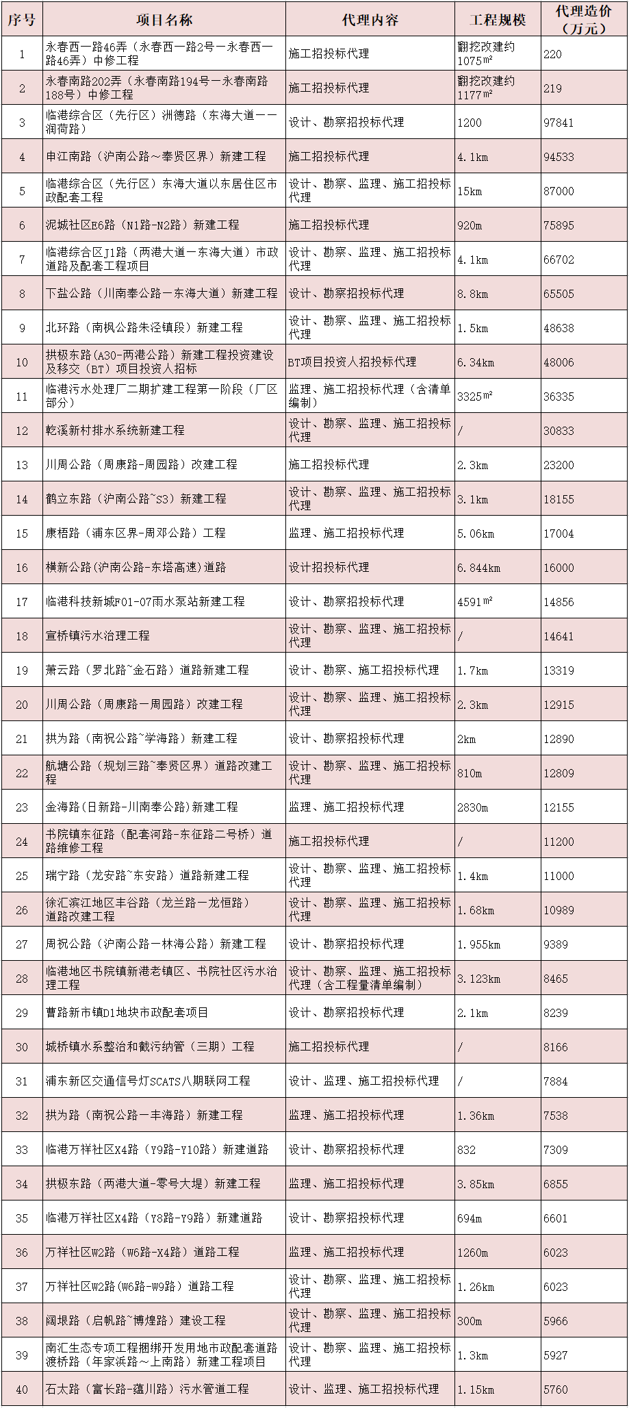 部分市政工程招标代理业绩一览表
