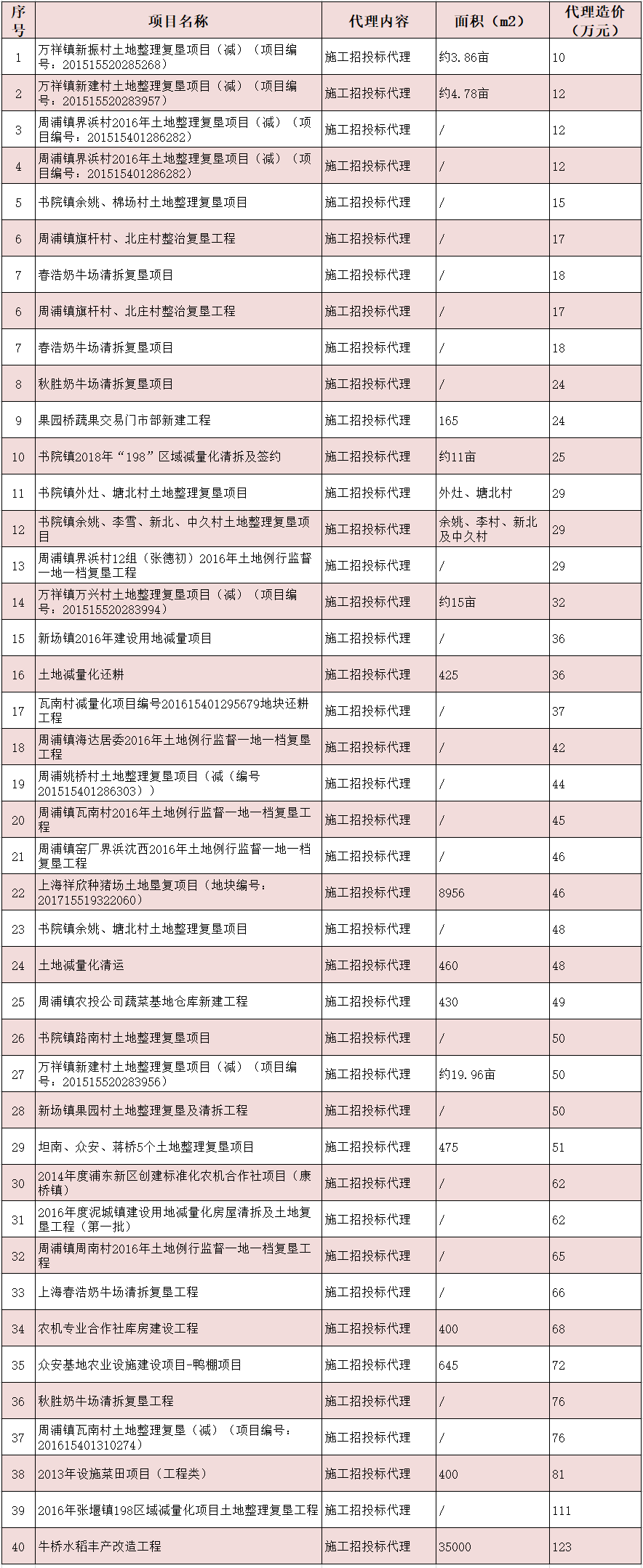 部分农业工程招标代理业绩一览表