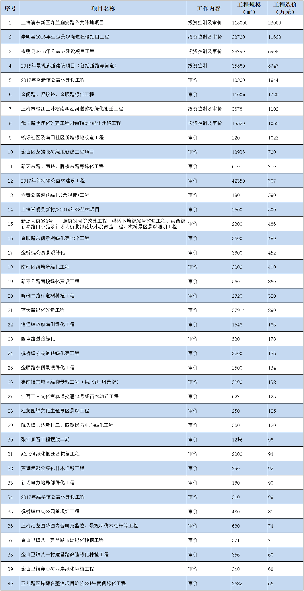 部分园林景观工程造价咨询业绩一览表