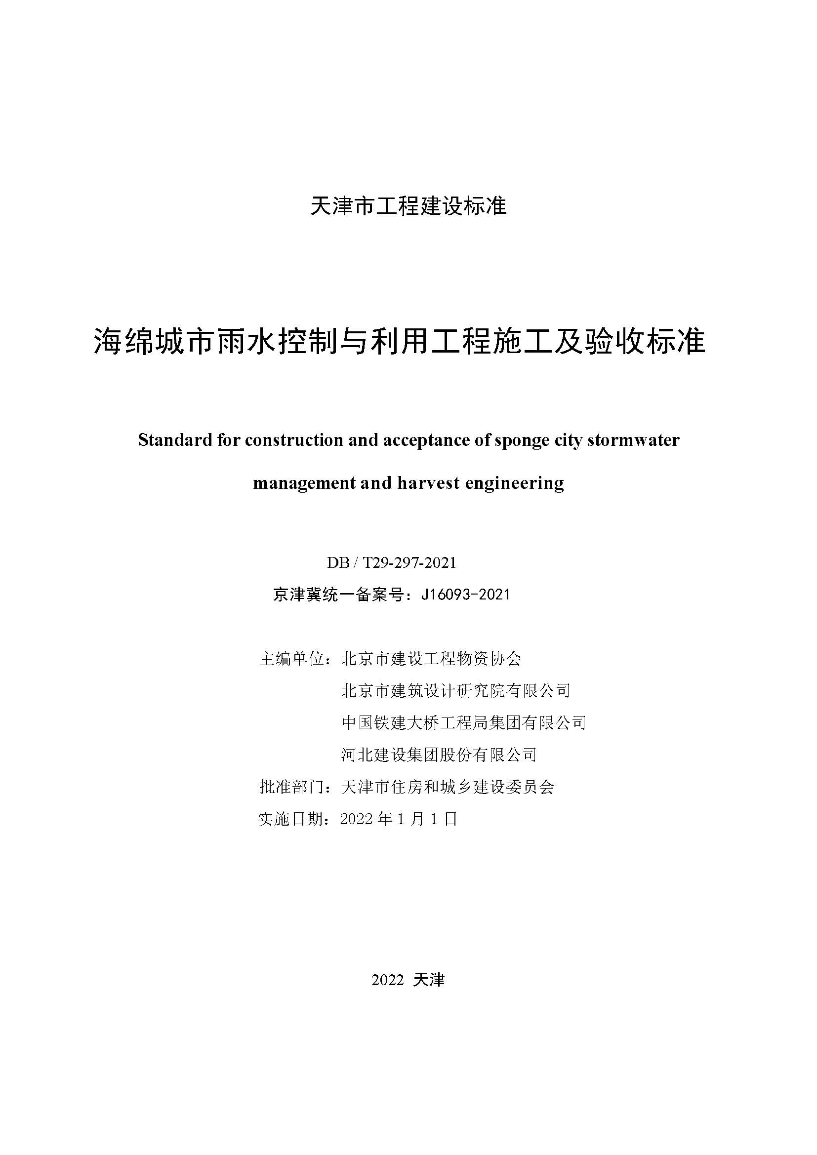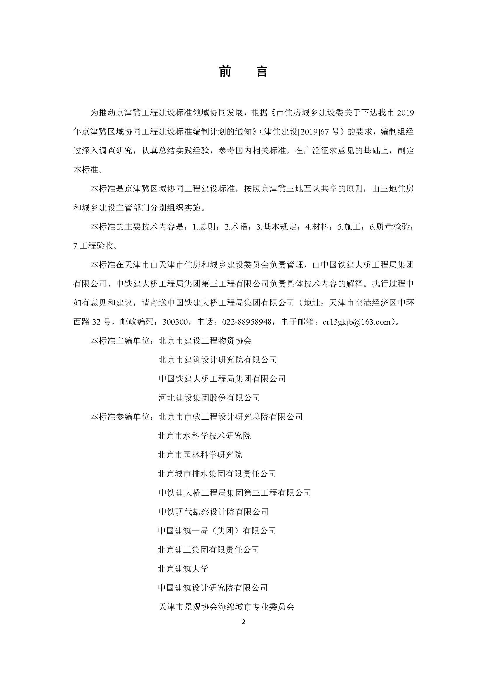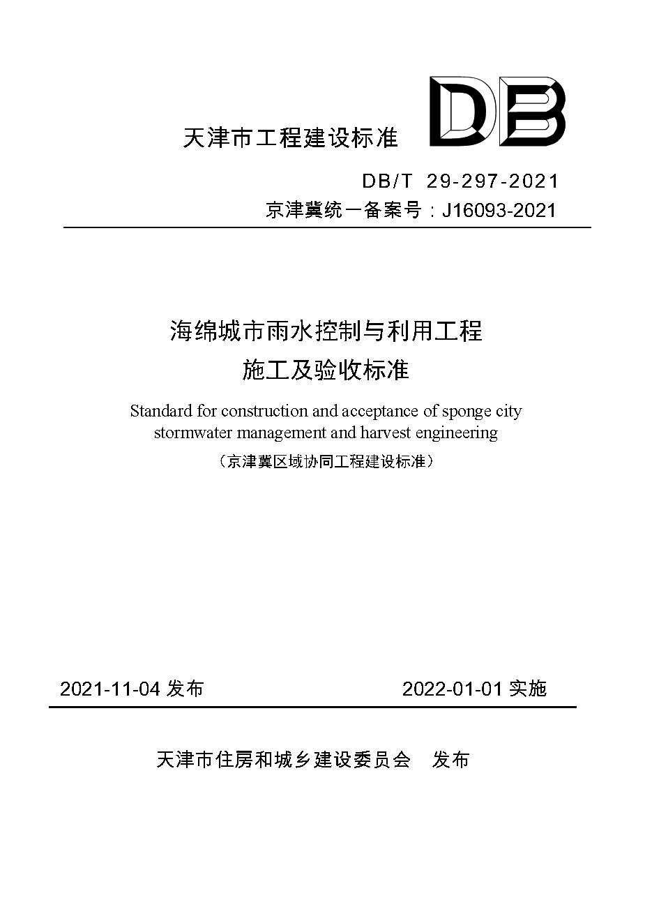 天津市海绵城市雨水控制与利用工程施工及验收标准
