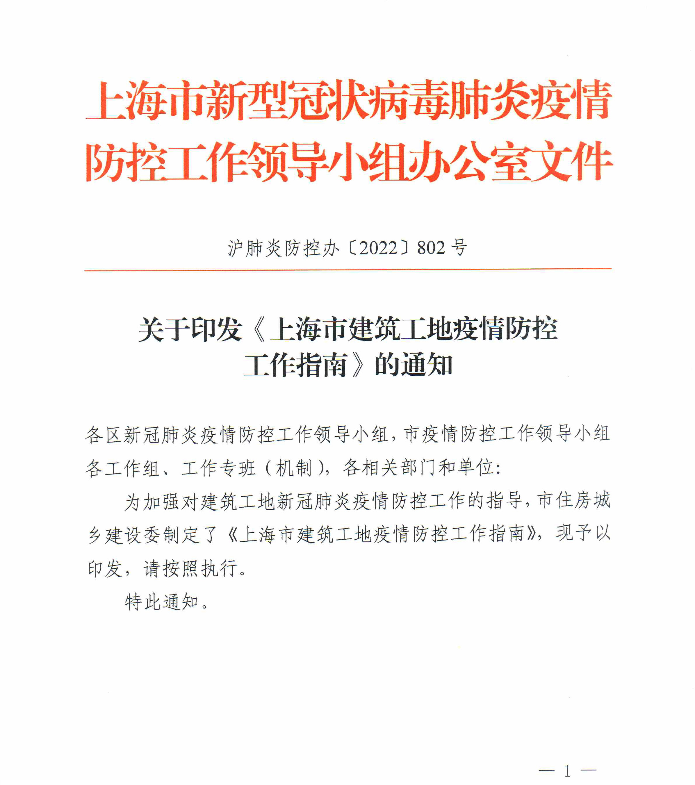 关于印发《上海市建筑工地疫情防控工作指南》的通知